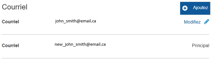 - Cliquez sur « Modifier », à droite de l’ancienne adresse courriel.