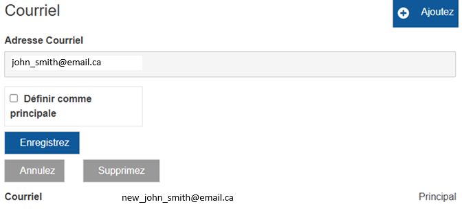 - La nouvelle adresse courriel est maintenant l’adresse principale. Après la mise à niveau, elle servira de nom d’utilisateur sur le Portail des services en ligne des TNO.