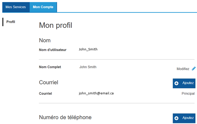 - À partir de la page Mes services, sélectionnez Mon compte.