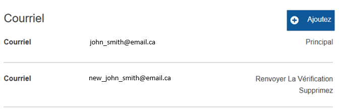 - Dans la section Courriel, cliquez sur « Ajouter ».